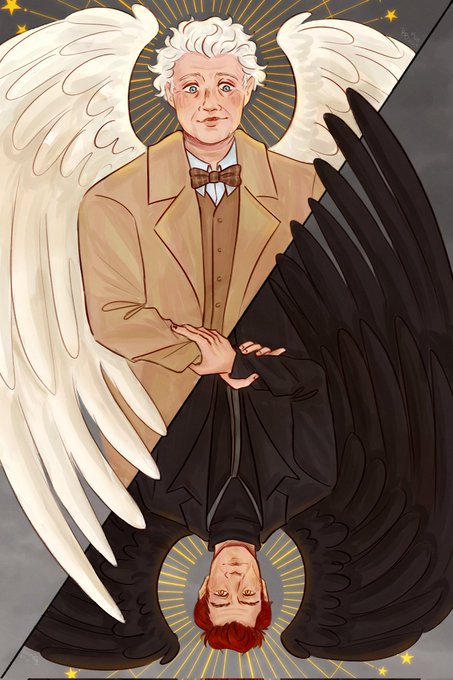 First time I drew this exact composition in 2019 I captioned it with "if you think anything could keep them apart, think again" and now we're here 😶😶 anyways, here's a lil redraw, I quite like how it turned out ✌️ #GoodOmensFanArt#GoodOmens#GoodOmens2