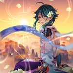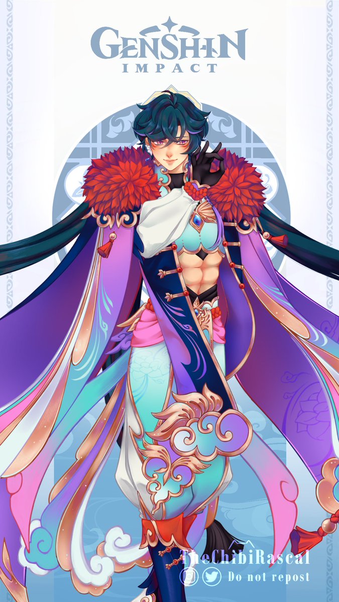 Mingyu • Solitude of the Viridescent Clouds An extravagantly-dressed hermit that resides in the mountains of Liyue. #GenshinImpactOC #OC #ocart #originalcharacter #rkgk #原神 #GenshinImpact