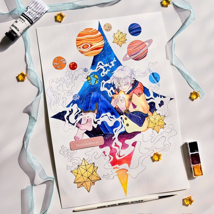 Rendition of my old painting: Enchanted Series no.3 🌠 Happy to be back doing watercolour art c: ❤ & 🔁 are appreciated 💕 #watercolorpainting #OC #Space #illustration #ArtistOnTwitter #traditionalart #concepart #painting #artwork #artistsupport
