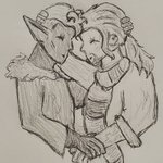 Just some more fanart of @LaurenWalshArt's Woubble!! When I found out hugs were possible, my little goblin sorcerer Kiz jumped right on board! #woubble #woubblefanart #goblinart #dndart