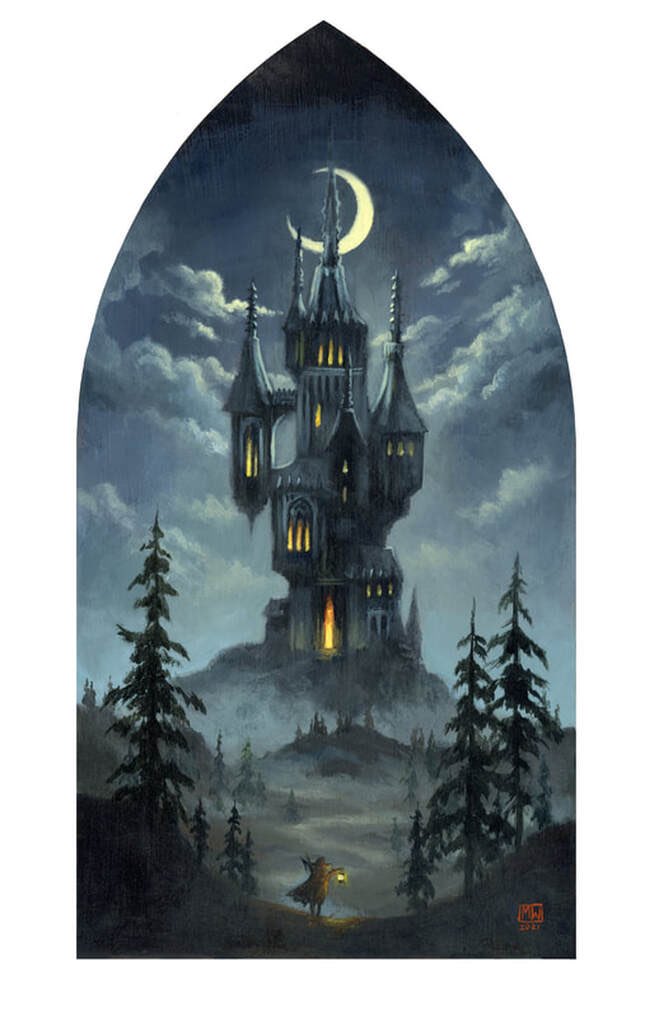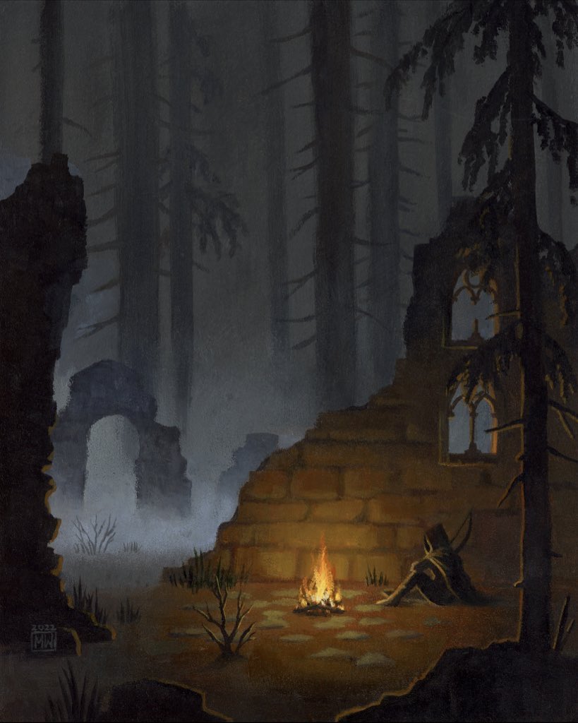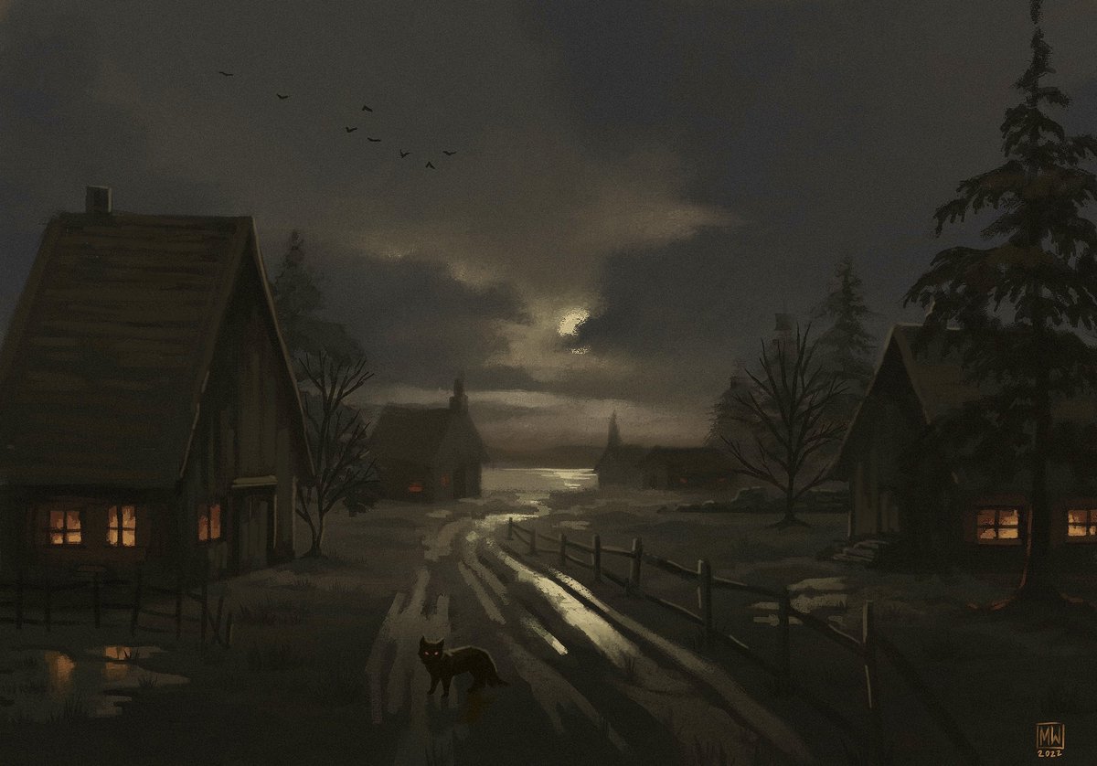 Hi #PortfolioDay! I’m Megan, an artist from Seattle. I work mainly with acrylic, gouache and digital media and I especially love painting moody landscapes and cozy spaces 🖤 I’m avaiI for freelance especially for book and tabletop gaming projects! thecreepingmoon.co
