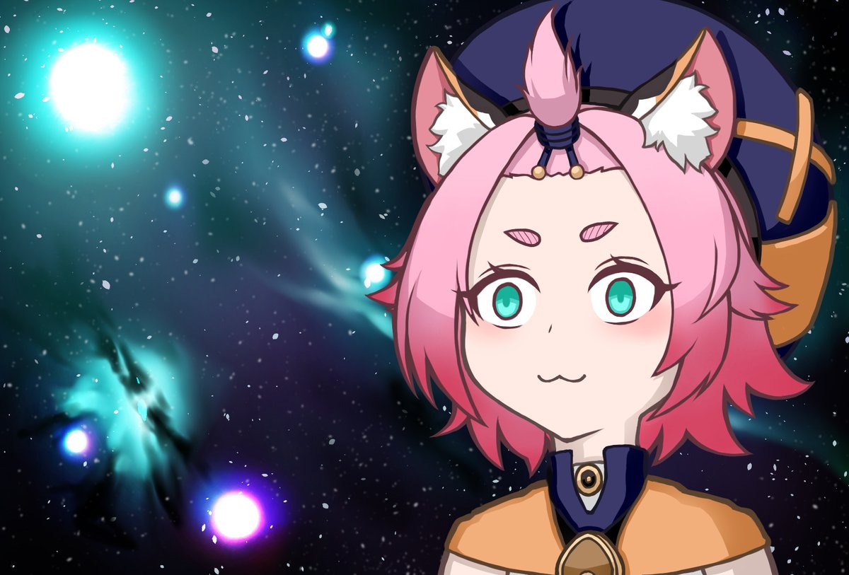 息抜きに宇宙猫ならぬ宇宙ディオナを描いてみた。原神で理解が追いつかない事態に遭遇したとき等にお使いください。 #原神 #Genshin_Impact