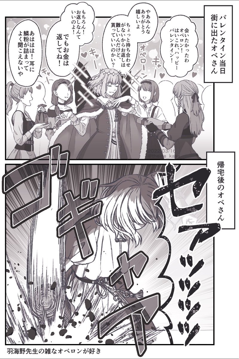 2571 12.5K 羽海野先生が描いてた雑なチョコの分け方するオベロンが頭から離れない #FGO 22/03/16 12:07