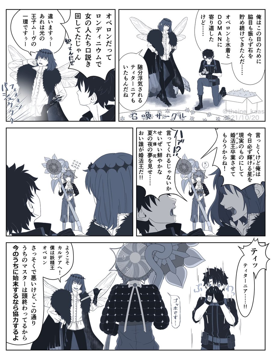 オベロン実装1周年に上げたかった漫画供養🧚♂️ 召喚したときの当時の状況や気持ちを凝縮しようとしたら途中から何描いてんのか分かんなくなった。なんだこれ #FGO