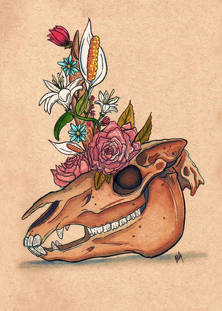 Inktober Day 6 "Bouquet" Back on track now. Could not just draw a bunch of flowers, so used a unicorn skull...why not #Inktober #inktoberday6 #inktoberBouquet #inktober2022 #art #artist #ArtistOnTwitter #drawing #Illustrations #Illustrator #ink #fantasyart