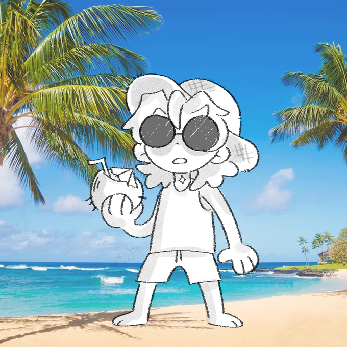 albedo on the beach with a drinky drink
