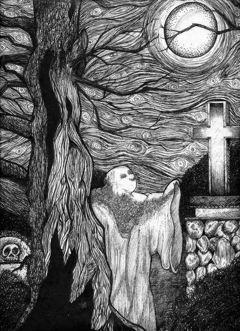 Art Student Mackenzie Cook’s “Ghost” #ghost #grave #graveyard #tomb #tombstone #moon #moonlight #draw #drawing #art #artwork #pen #pendrawing #ink #inkdrawing #inkdrawingart #inktober2020 #inktober #sky