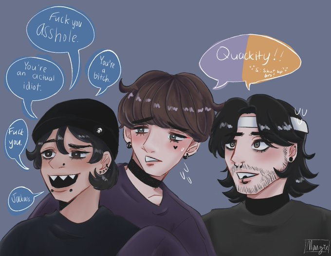 quackity shit talking while his bfs try to stop him #quackityfanart #karljacobsfanart #sapnapfanart #fiancetwt