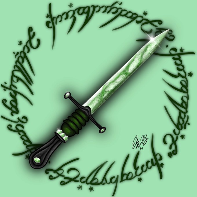Swordtember DAY ONE: Crystal I immediately thought of Andúril, the sword of Aragorn, and using Moss agate as the crystal with the green growing in between the spots where the sword was broken and reforged together. For my first time drawing a sword I’m proud #swordtember