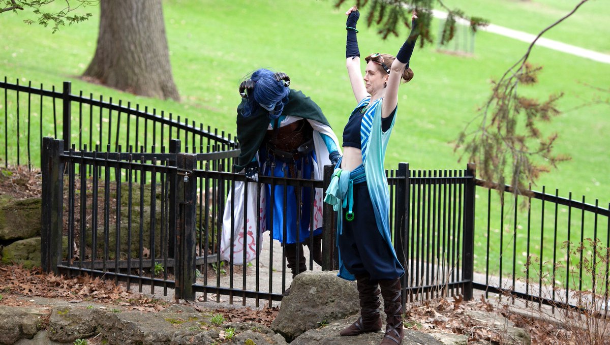Sometimes, victory is beating your friend in fence climbing. Other times, it's not tripping over your own feet to do it. --- 📸: @kmdbcos Jester: @TroublesomeGabe Beau: Me --- #criticalrole #criticalrolecosplay