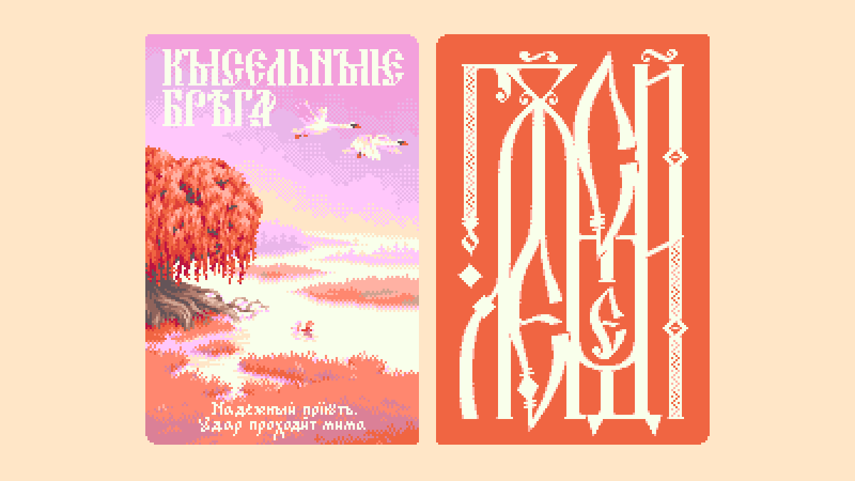 > Shores of Kissel 🦢 My card for the folklore CCG collab "СказККИ" run by the Russian #pixelart community. Take a look at the full interactive deck here: 0x405.ru/cards Many thanks to @a0405u for the realization of the project! 🤘 #ドット絵 #Calligraphy #lettering