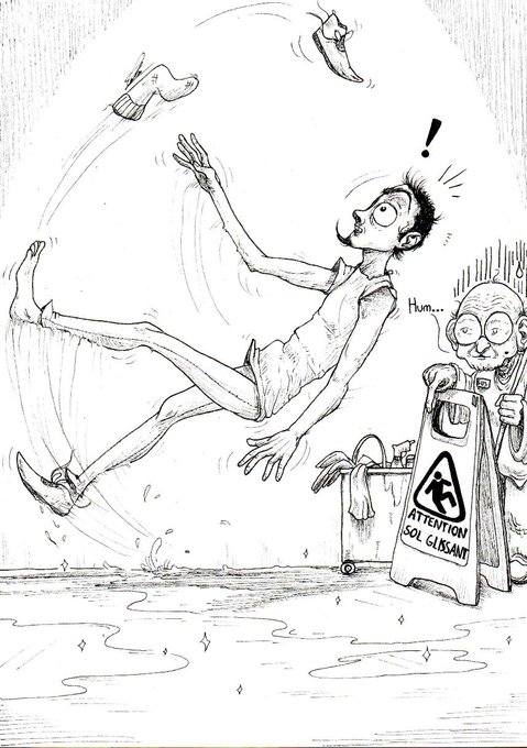 12. Slippery / glissant ~ #inktober2020 Hum... Comment dire ?... C'est pas comme si on n'avais pas prévenu... A part ça, je crois savoir d'où vient la chaussette d'hier !! 😉 . Encre noire, format A5. #inktober2020day12 #InkDrawing