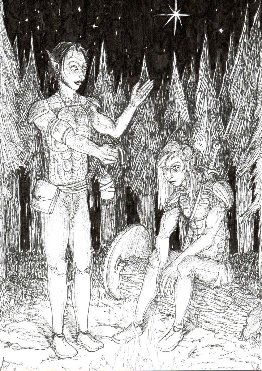 15. Outpost / avant-poste ~ #inktober2020 Ces deux elfes constituent un avant-poste. Ils peuvent paraître en sous effectif mais, croyez-moi, ce sont deux soldats d'élites et c'est largement suffisant ! ... Chut ! L'un d'eux semble avoir entendu quelque chose aux alentours...