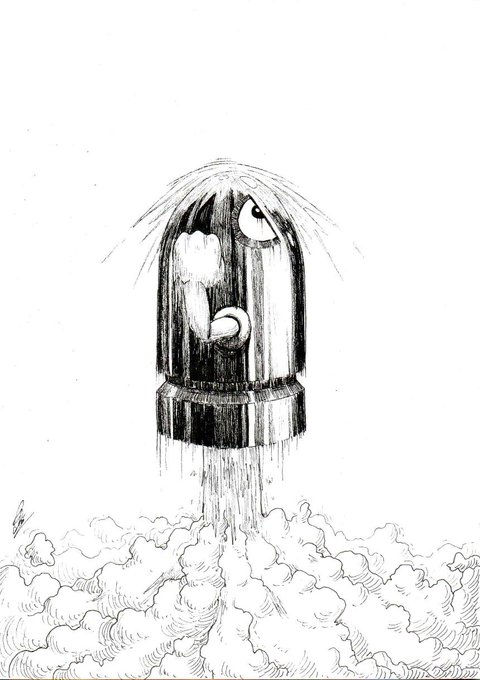 16. Rocket / fusée ~ #inktober2020 Pour fusée, j'ai eu envie de représenter un Bill Ball de l'univers Mario. Sans en avoir vraiment l'apparence, il en a au moins la vitesse ! (et, en plus, une détermination sans faille pour percuter ses ennemis !) #inktober2020day16