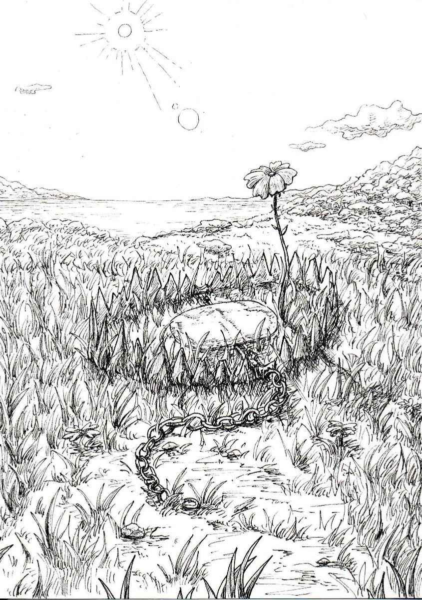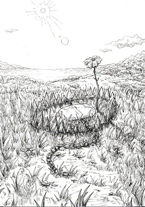 18. Trap / piège ~ #inktober2020 Une fleur pousse, dans une contrée qui lui inspire confiance, sans se soucier du piège qui pourrait se refermer sur elle. Contrairement à d'autres, elle ne le voit pas comme une menace, ce n'est certainement pas ça qui va l'empêcher de vivre !