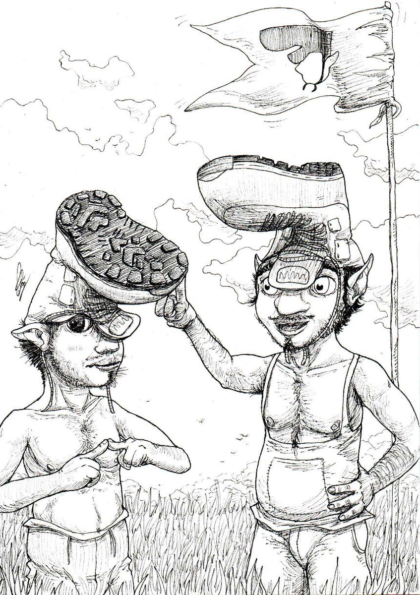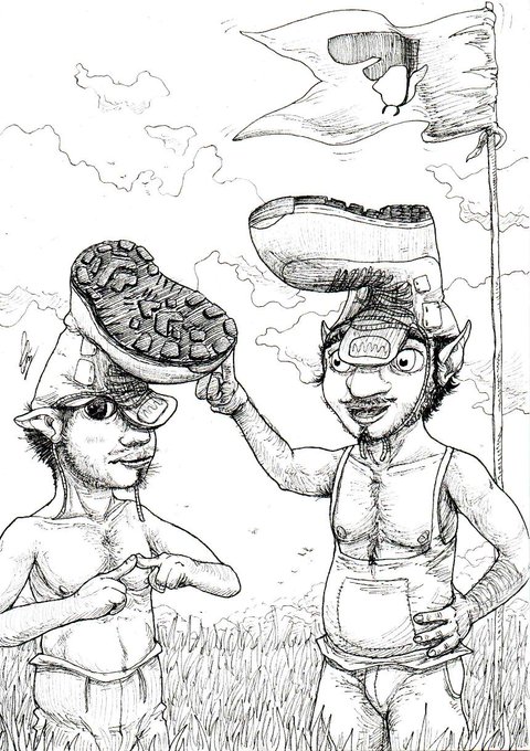 29. Shoes / chaussures ~ #inktober2020 "Beh alors sergent, on sait pas faire ses lacets !?" Je vous l'accorde, c'est une façon peu conventionnelle de mettre des chaussures... Cela a l'air très sérieux, c'est à se demander si on marche sur la tête... #inktober2020day29 #Inktober