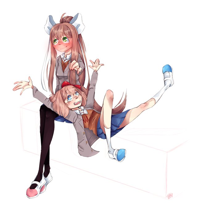 guess who got the balls to actually fight their stomach and draw kissing #ddlc #sayonika #DDLCfanart