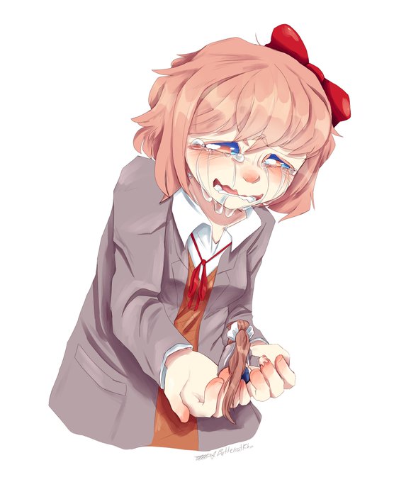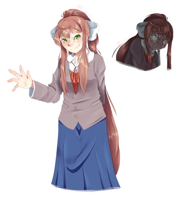 tried drawing @freebee_honey 's moni because i wanted too also drew her crying cause of fuckin course i did #Monika #DDLC #DDLCfanart