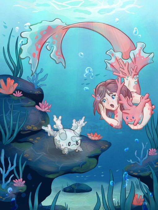 Corsola mermaid is here to remind you to protect the coral reef this #mermay 🧜🏻♀️✨ #Pokemon #fanart #mermaids #illustration #pokemonfanart