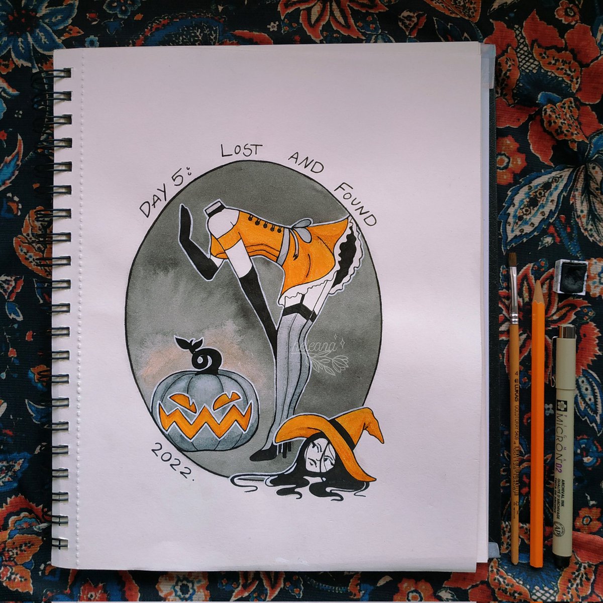 Lost my mind 🎃 Pinup witch who lost her head, and is very close to loosing her patience too Entry for @bunzorg 's Ghoultober #inktober2022