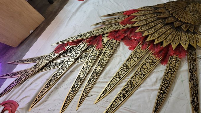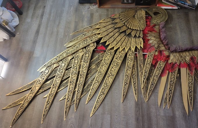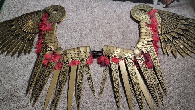 couldn't resist throwing in some feathers to see how it looked some trickery needed still but almost there this half is about 60lbs... #cosplay #GodofWarRagnarok #art #3dprinting