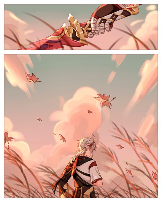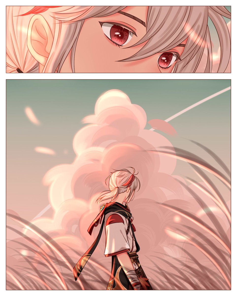 "Come driving rain or winds that churn, I shall return, by blade alone, armed, if barefoot, to my home..." #GenshinImpact #KaedeharaKazuha #FanArtContest