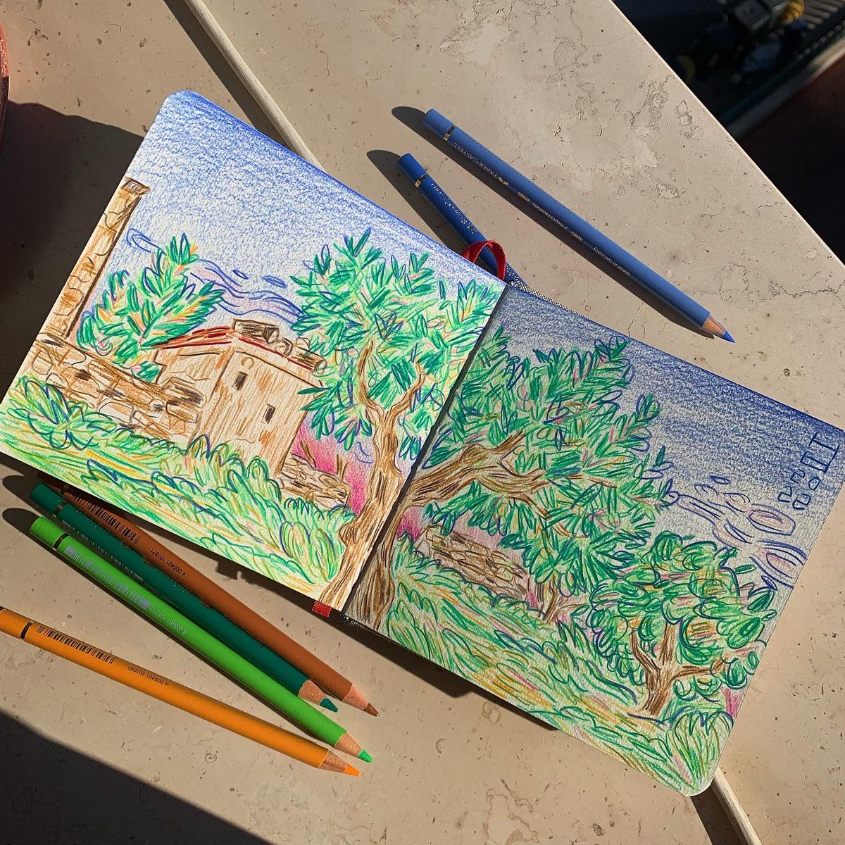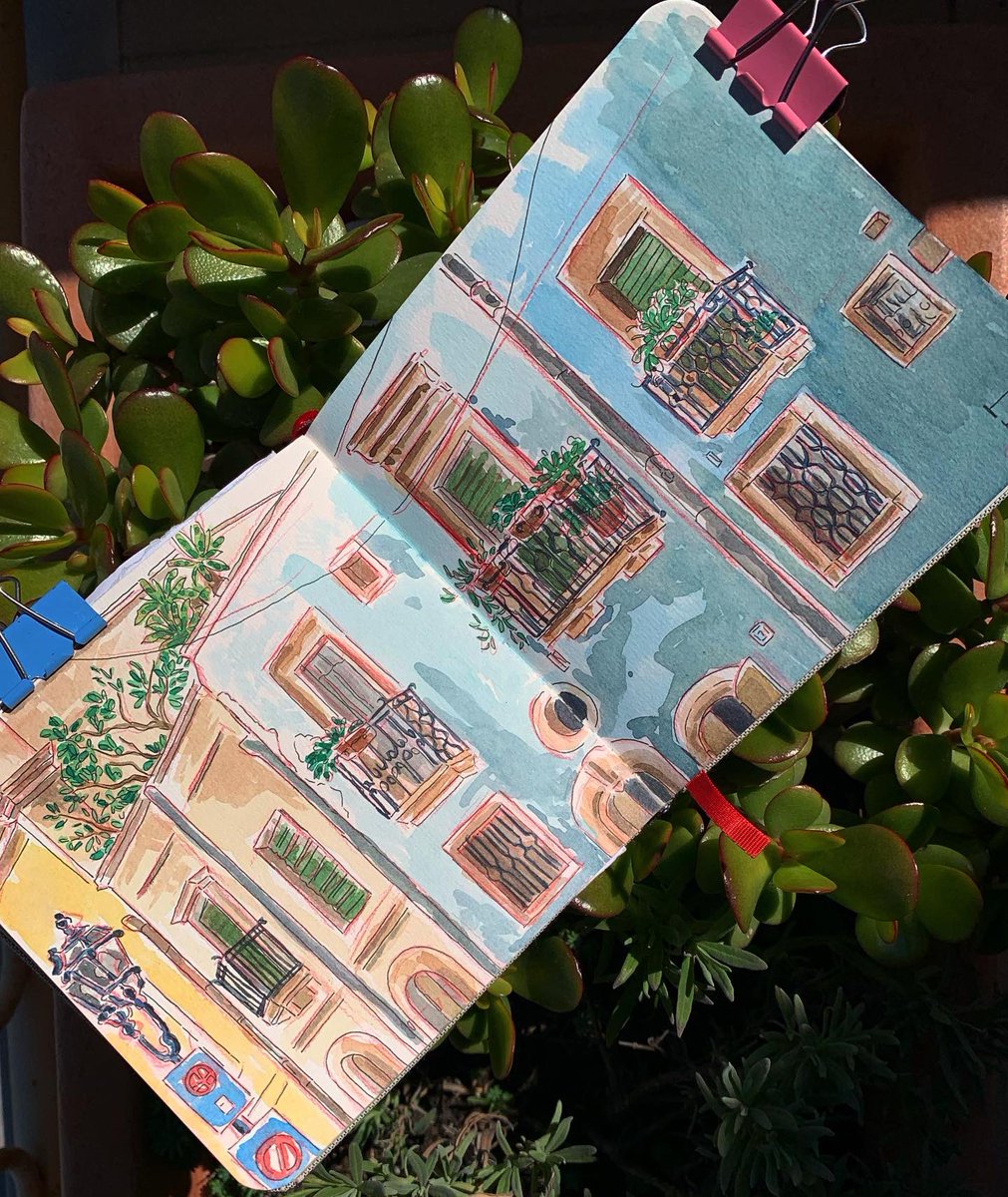#PortfolioDay I’m Elio, 22, artist and illustrator, and I really like sketching and painting on location! I like crunchy textures and contrasting colors in my work, using various traditional mediums (mostly watercolor and colored pencils) but I also work digitally!