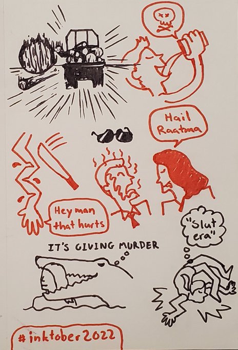 0 2 Horror movie deaths and injuries for #inktober ! 🪵💀🗡🐁🐊🤸♀️ #inktober2022 22/10/03 06:08