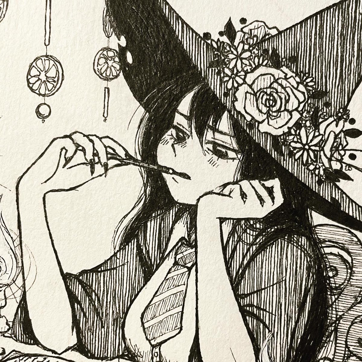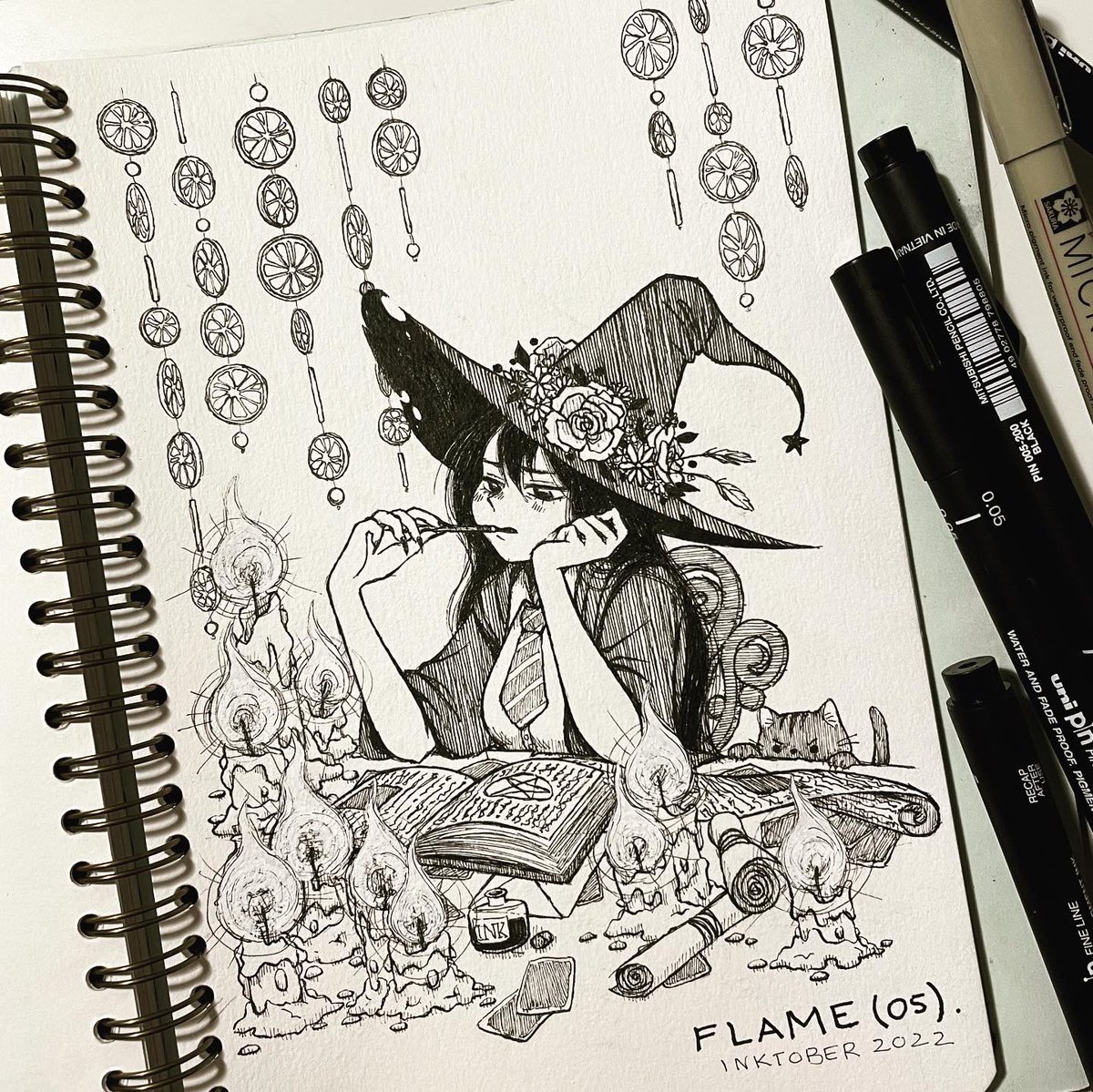 day 5 of inktober 😫 this one was a struggle 🥺 my hand hurts 😭 peep the kitty #inktober #inktober2022 #inktoberchallenge #inktober2022day5 #witch #kitty #witchcraft #witchtober #witchtober2022