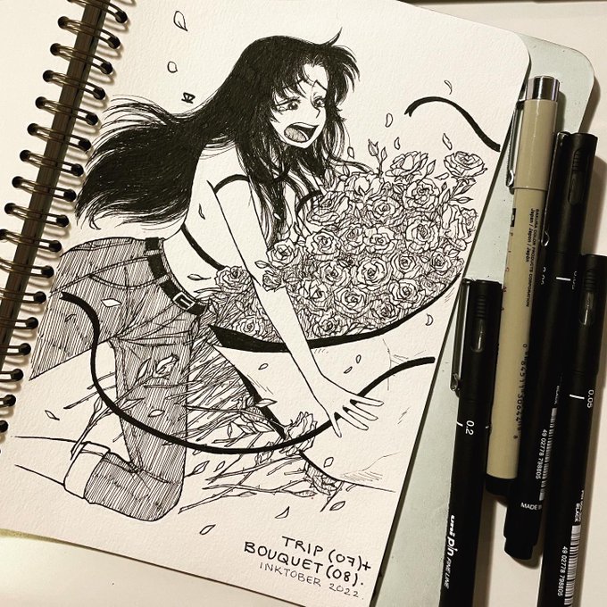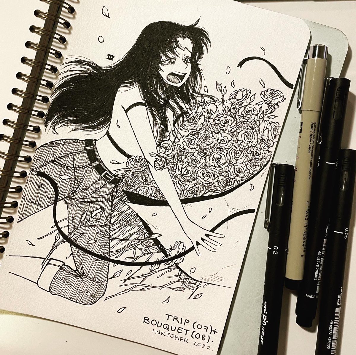 the day has come where i catch up to the present day in #inktober 😌👍🏻 thse two worked well together me thinks 🥸 #inktober2022 #roses #inktoberchallenge #inktober2022day6 #inktober2022bouquet #inktober2022day7 #Inktober2022trip