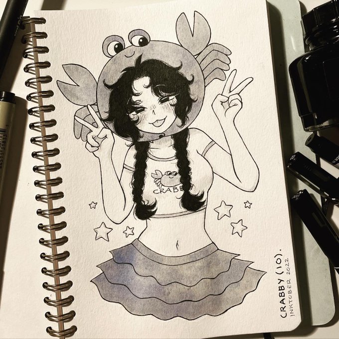 day 10!!! CUTE GIRLS IN CRAB HATS!!! 🦀 this time i used ink ⭐️ #inktober #inktober2022 #inktoberchallenge #inktober2022day10 #inktober2022crabby #cutegirltober #cutegirltober2022