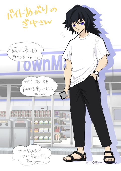 6 50 ロー○ンコラボ 常連jkに絡まれそう(*´艸`) #鬼滅の刃イラスト #冨岡義勇 21/05/28 20:56