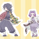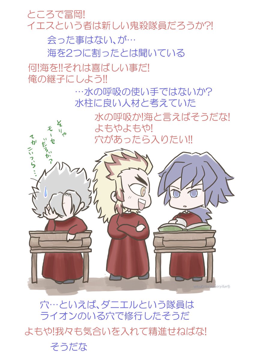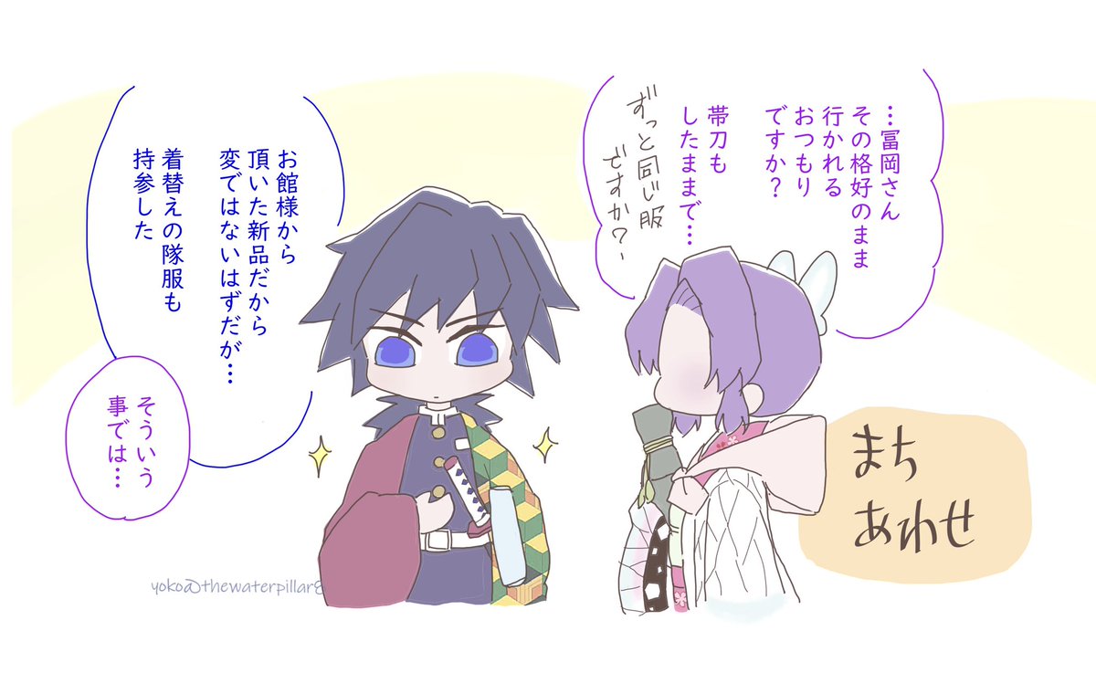 ざっくり描き練習定期\( •̀ω•́ )/ 42話の表紙の冨岡さんが好きなのでそれを元に自分なりにアレンジーです 🐊先生は袖に青ですがズボンに青いれてみましたو( * ॑꒳ ॑* )٩ #鬼滅の刃イラスト #冨岡義勇
