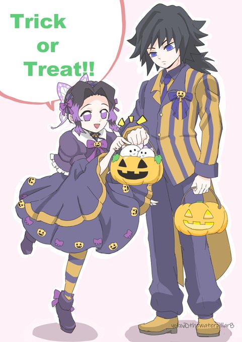 ☠🎃HappyHalloweenぎゆしの🍭🍬 どしてもヘッドドレスが描きたくなって公式のからーヾ(*´∀`*)ノ ゴスロリいいですねゴスロリ