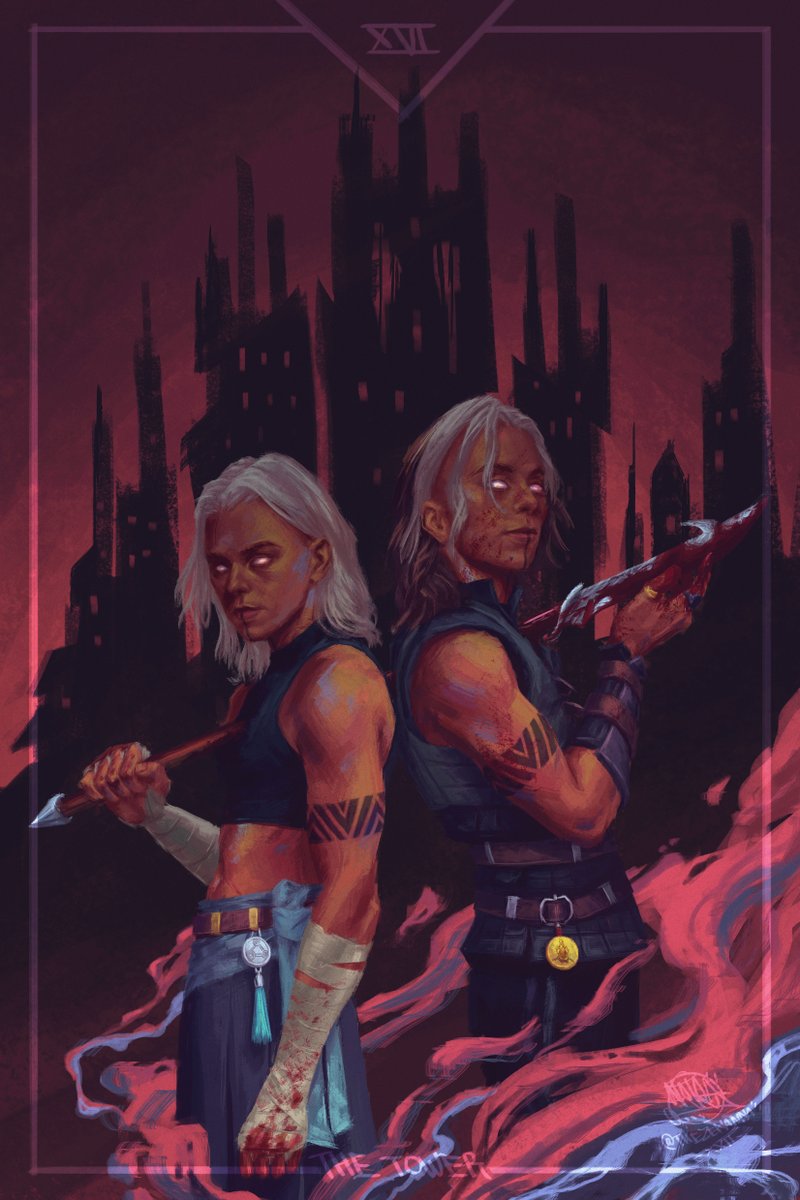 "Twins dread their own inevitable doom as they look identical, yet their beliefs antithetical." #ocdrawing #DnDcharacter #dndart #TTRPGs #ttrpgart #tarot