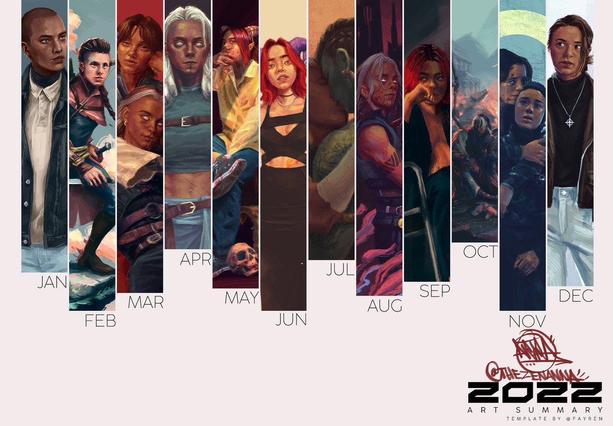 Thank you all so much for the support. It's been a funky year of meeting the love of my life, d&d and ttrpg ocs, and warrior nun! 💖😳 Here's to more experimental comps next year ✨ Template by the amazing Saren Stone! #artistwrapped2022 #Artsummary2022 twitter.com/fayren/status/…