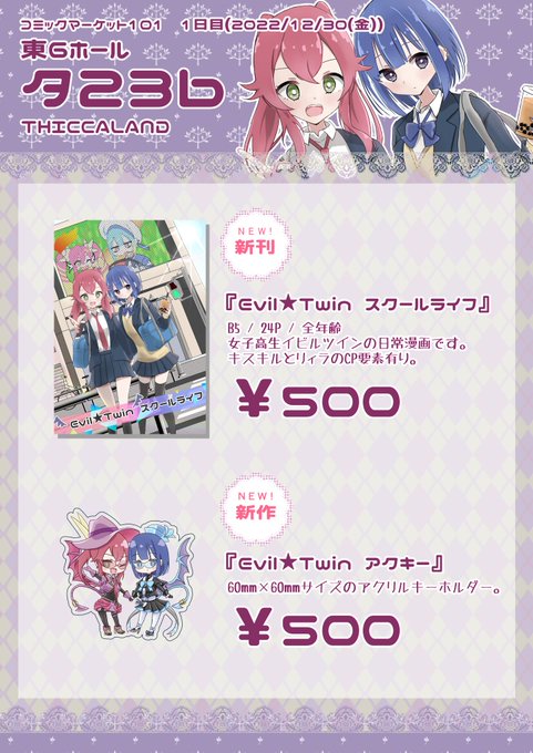 あなたのサークル「THICCALAND」は、コミックマーケット101で「金曜日東地区 "タ " 23b」に配置されました!コミケWebカタログにてサークル情報ページ公開中です! webcatalog.circle.ms/Circle/1681595… #C101WebCatalog 冬コミ受かってました!遊戯王OCG(イビルツイン)の何か出します!よろしくお願いします!