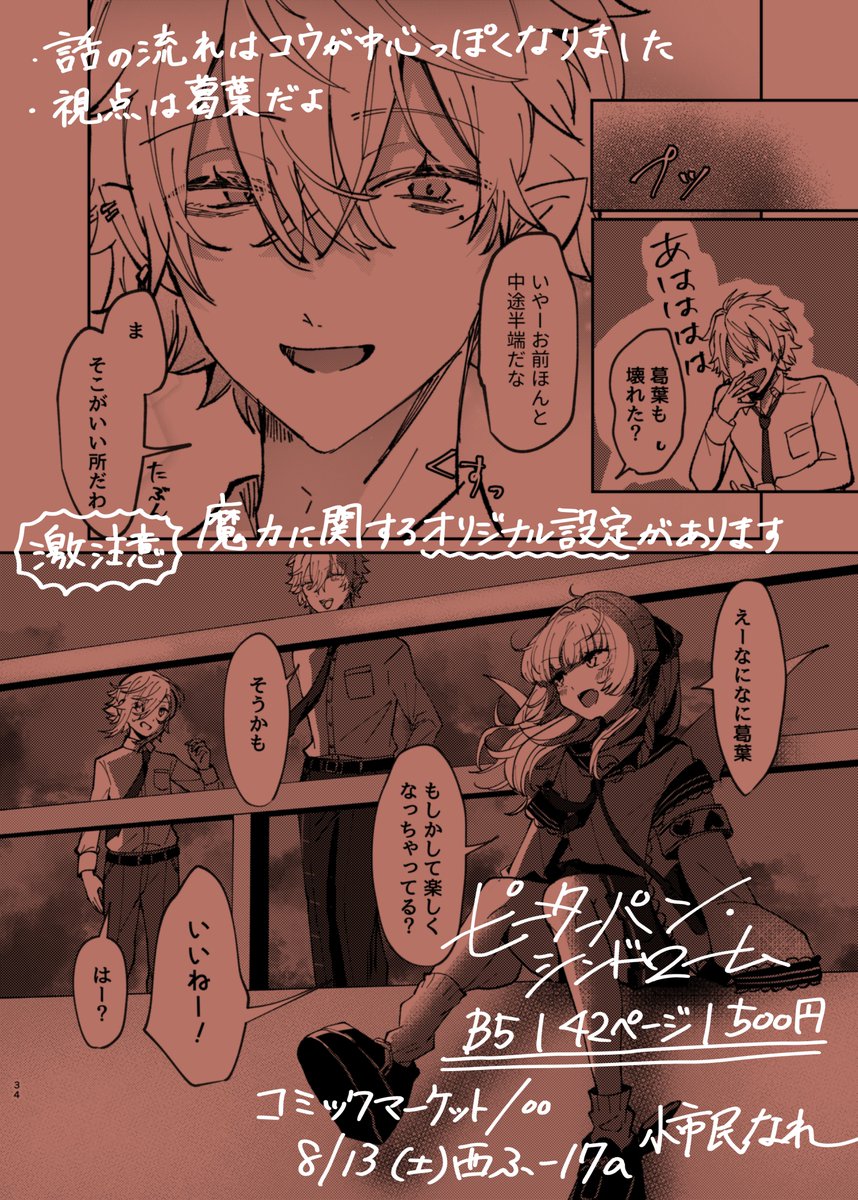 【C100コミケ新刊】 にじさんじルザキン本 『ピーターパン・シンドローム』 B5|42P|500円(会場) 3人がコウの学校で小さめのハプニングをおこす話です 冒頭読める分はツリーにつなげておきます よろしくお願いします! 🍈委託通販予約:melonbooks.co.jp/detail/detail.…