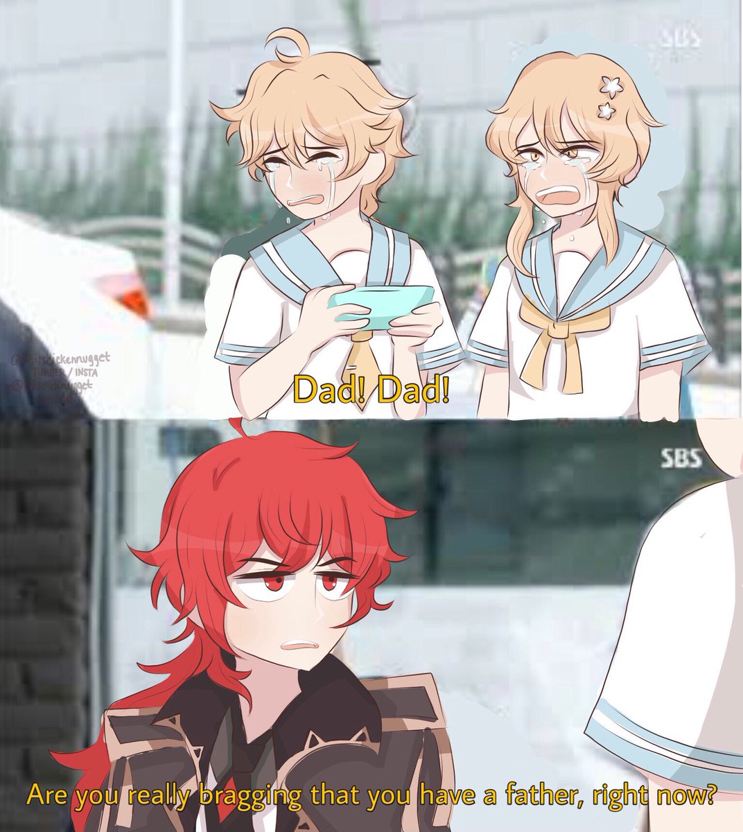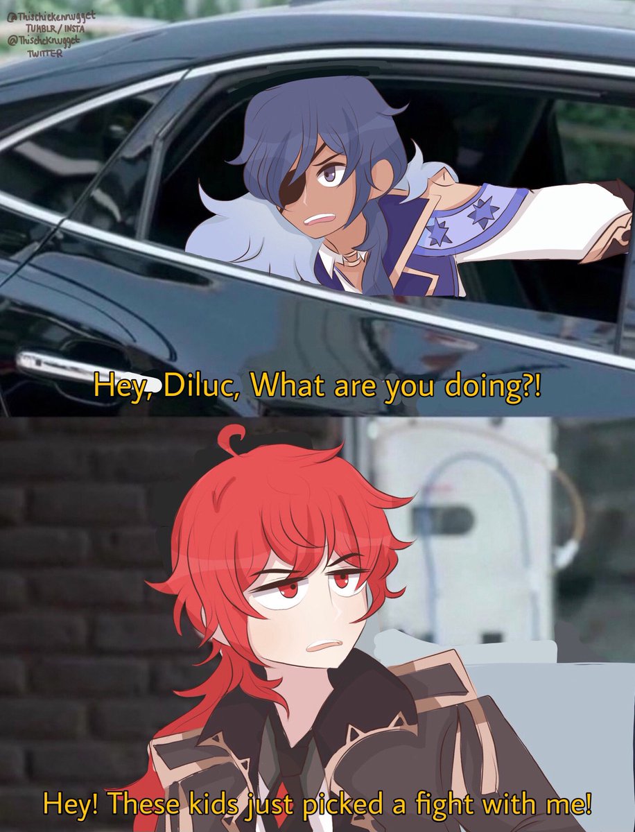 Kids these days, man.. #原神 #genshinimpact #genshinimpactfanart #kaeya #diluc #aether #lumine