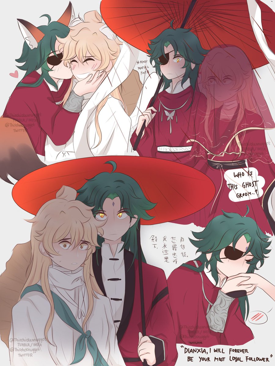 Thank you for 500+ follows~ I love you all Also it’s been awhile since I’ve drawn that hualian au ft. Xiaoaether so here we goooo 🍃 #原神 #XiaoAether #xiao #aether #GenshinImpact #genshinimpactfanart