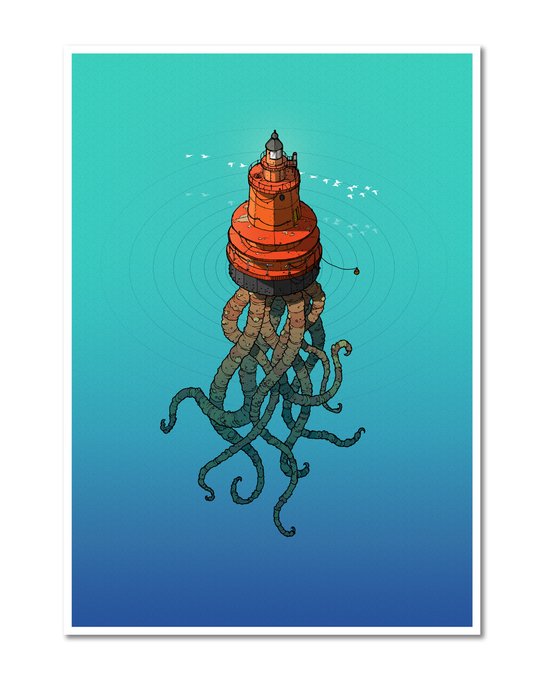 New print up in my @inprnt store. Tentacled Island. inprnt.com/gallery/thisno… #ArtPrints #Illustration #Lighthouse