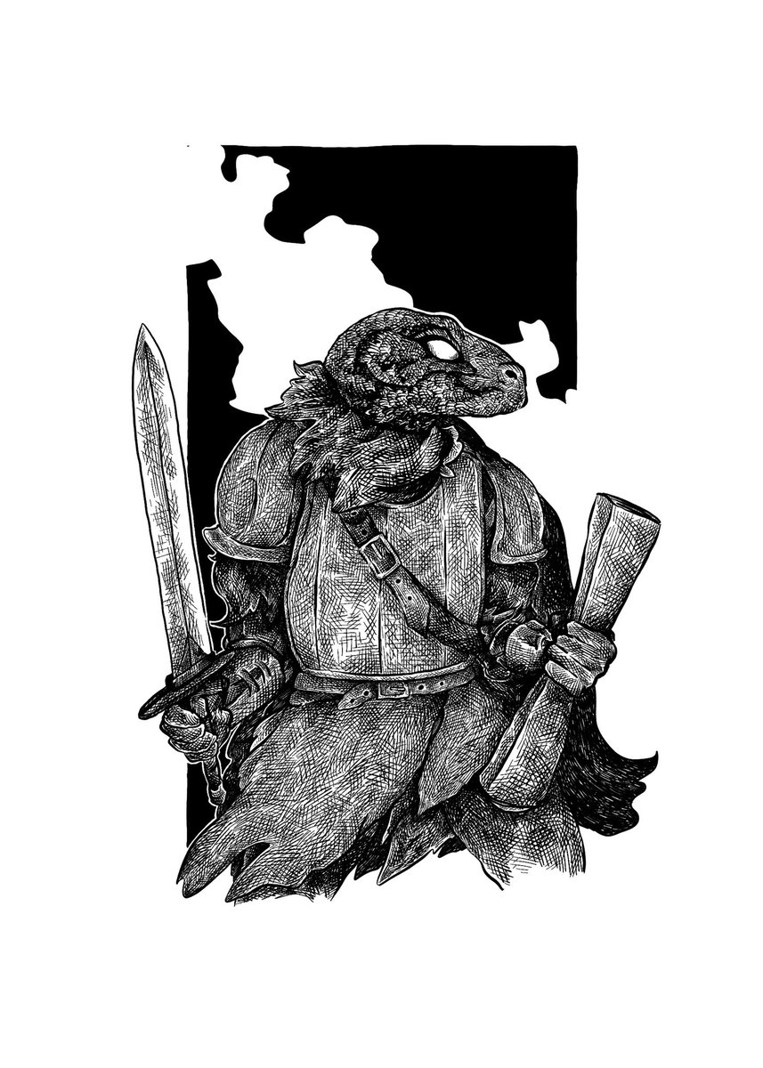 ‘The Guardian’ A towering knight, with a jovial temperament. Searching for survivors from his company, separated as the kingdom fell to ruin. #illustration #inktober #procreate