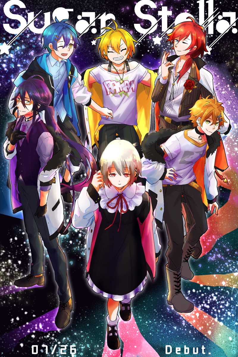 32 127 #しゅがすて デビュー祝いは宣伝ポスター風にしたかったのです。ようやく完成。 #みみみアート #ユカリの縁 #コハクアート #輝澄カレン #猫海せな #黄葉いおり 20/07/29 05:01
