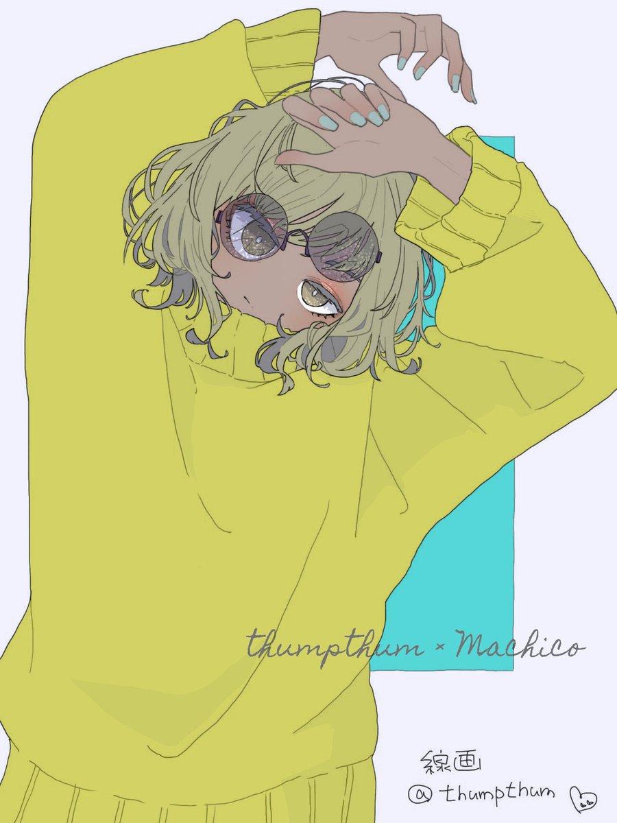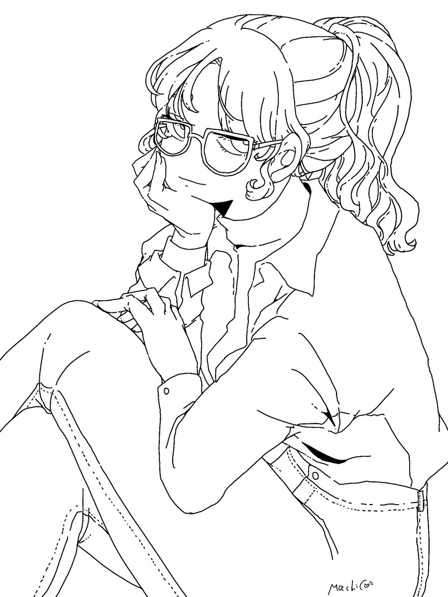 まちこさん(@mstown02 )の線画交換企画に参加させて頂きました☺️💕 描くのも描いて頂くのも最高に楽しかったです♪ 「ハイネック、爪、メガネ、くせっ毛」テーマで描かせて頂きました twitter.com/mstown02/statu…