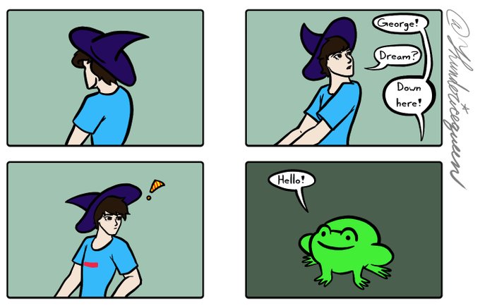 Comic time? A little magic au dnf perhaps, with some frog Dream? Please enjoy a cute little comic with green man having a crisis. Final page in replies! @Dream__Fanart #dream #dreamfanart #georgenotfound #georgenotfoundfanart #dnf #dnffanart