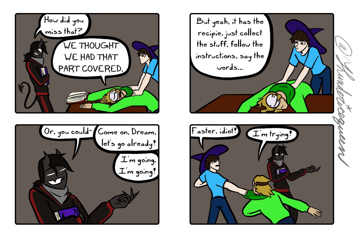 Frogcomic part 3 is here! I feel like I need a disclaimer that Frogcomic will not feature any more frogs. Our boys are gathering spell components! As always, final page in replies @Dream__Fanart #dream #dreamfanart #georgenotfound #georgenotfoundfanart #sapnap #sapnapfanart