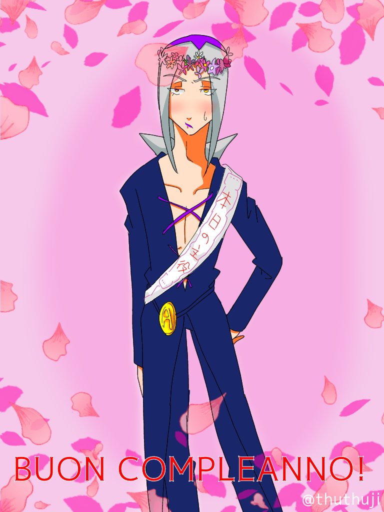 圧倒的似てないけど先輩おめでとうございます!!!先輩は不本意ながら皆に祝われて照れてれば良いよ!!! たぶん「本日の主役」って書いたのはナラあたり。 #レオーネ・アバッキオ生誕祭2021 #アバッキオ生誕祭2021