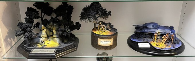 #今月作ったプラモ晒そうぜ 夏の展示会も一息ついたので作品棚を整理。焚き火シリーズの3作品を並べました。 左は2017年の千葉しぼり展示会「全日本シネマ選手権」参加の「戦士の休息」 真ん中は2020年静岡AFVの会参加の「My Friends」 そして一番右は今月完成品で中京AFVの会参加の「BLUE NIGHT」