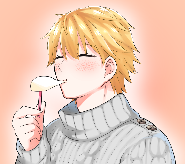 お餅じゃなくて雪見だいふく食べてるエビオ #絵クス絵画