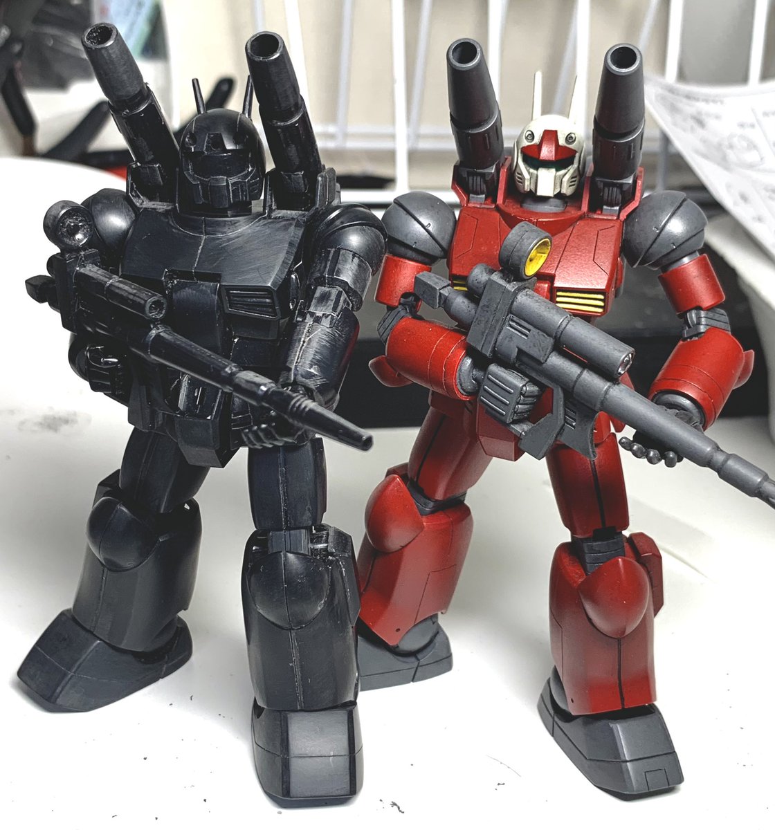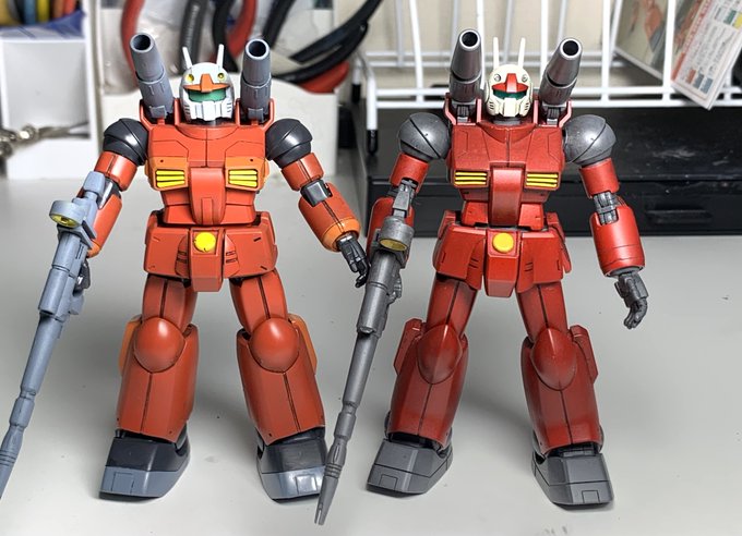 #ガンプラの画像を貼るとRTされると聞いて #ガンプラ #ガンプラ好きと繋がりたい #ガンキャノン #ガンプラは自由だ エコプラガンキャノン仮組みです。エコプラの方がどっしりして原作に忠実だと思います。リバイブはスタイリッシュ。